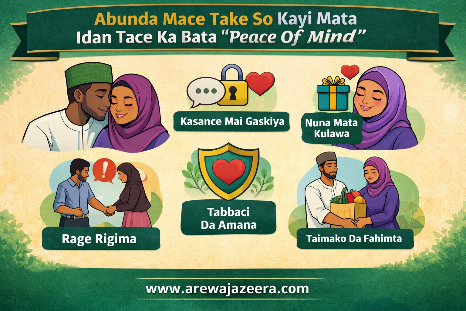 Tags: #SirrinZamanAure #Soyayya #PeaceOfMind #MaAurata #RayuwarAure #ShawarwarinSoyayya #ZamanLafiya #IlminAure