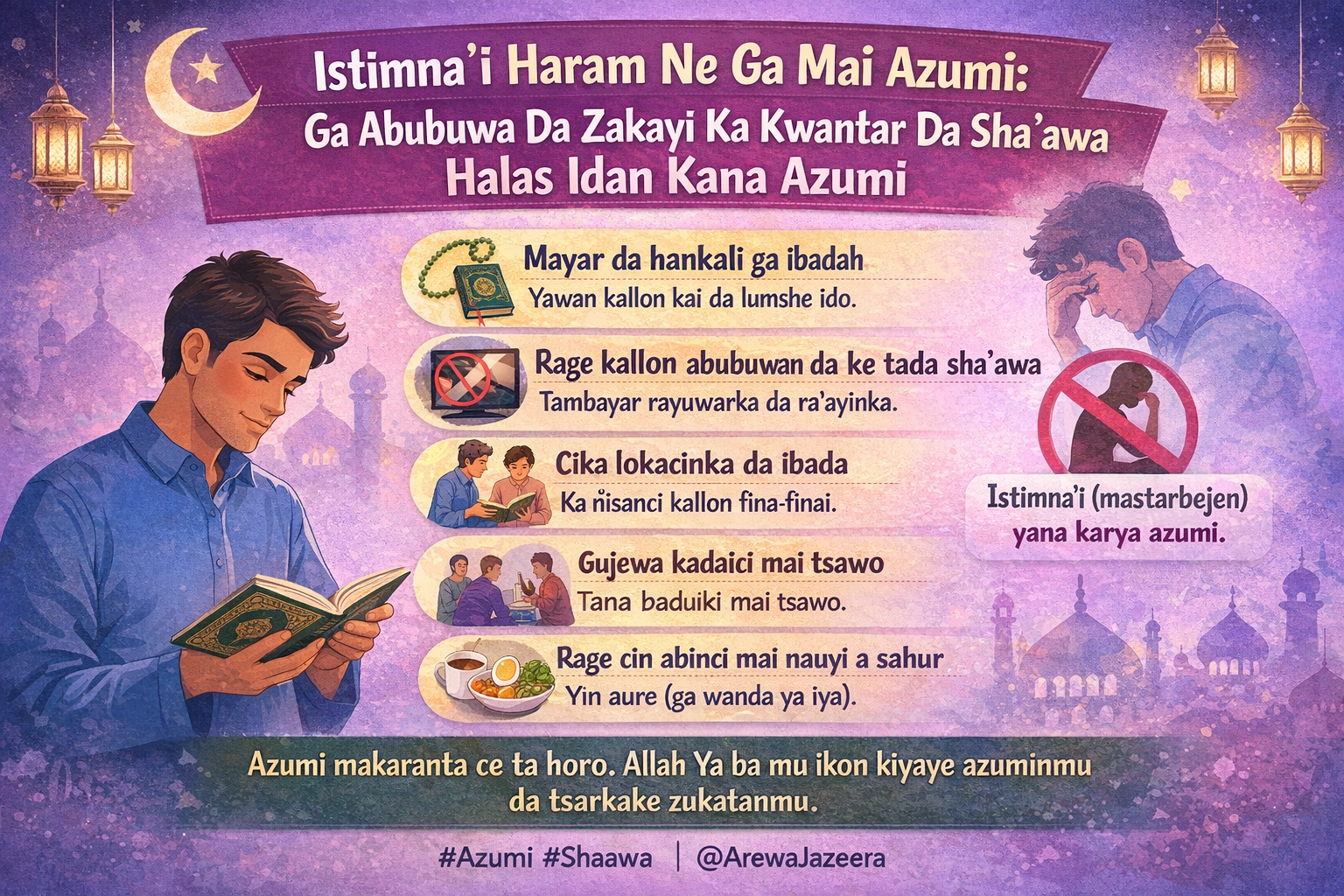 Azumi makaranta ce ta horo. Idan muka koyi sarrafa sha’awa a Ramadan, hakan zai taimaka mana har bayan Ramadan.