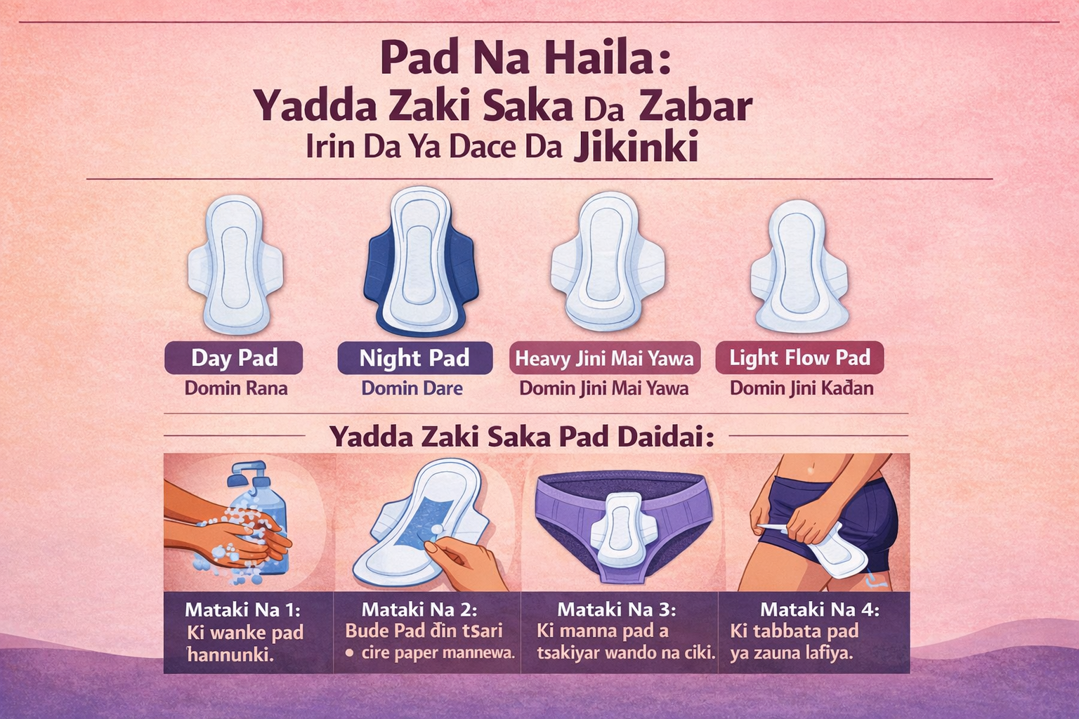 Pad ba kayan sawa kawai bane, kariya ce ga lafiyar mace. Fahimtar yadda ake saka shi da zaɓar irin da ya dace zai taimaka miki rayuwa cikin natsuwa da tsafta a lokacin jinin haila.
